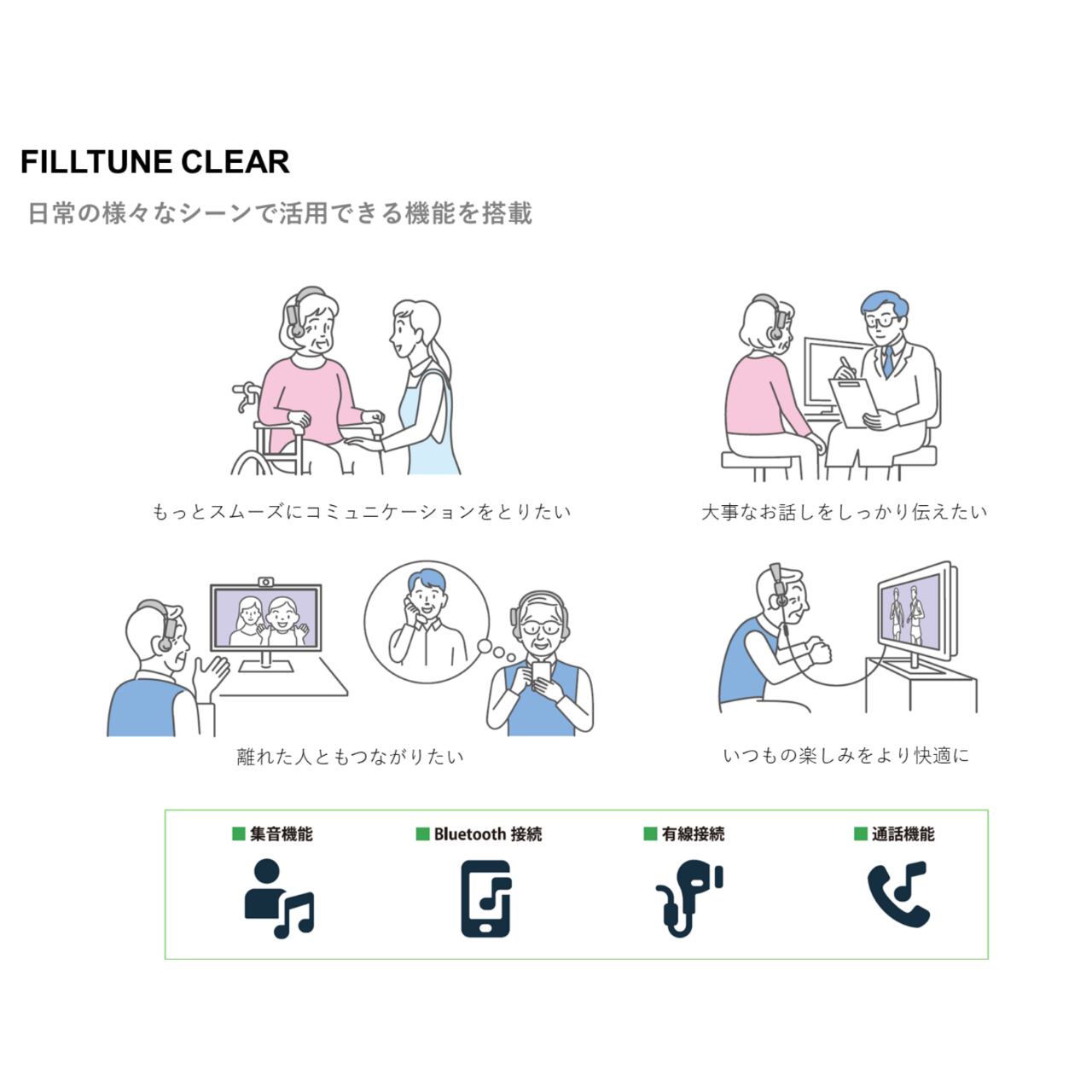 FILLTUNE CLEARは、このような不安や悩みを抱えるあなたに『聴こえ』を届けることを目指し、"希望"となるプロダクトとして開発しました。
